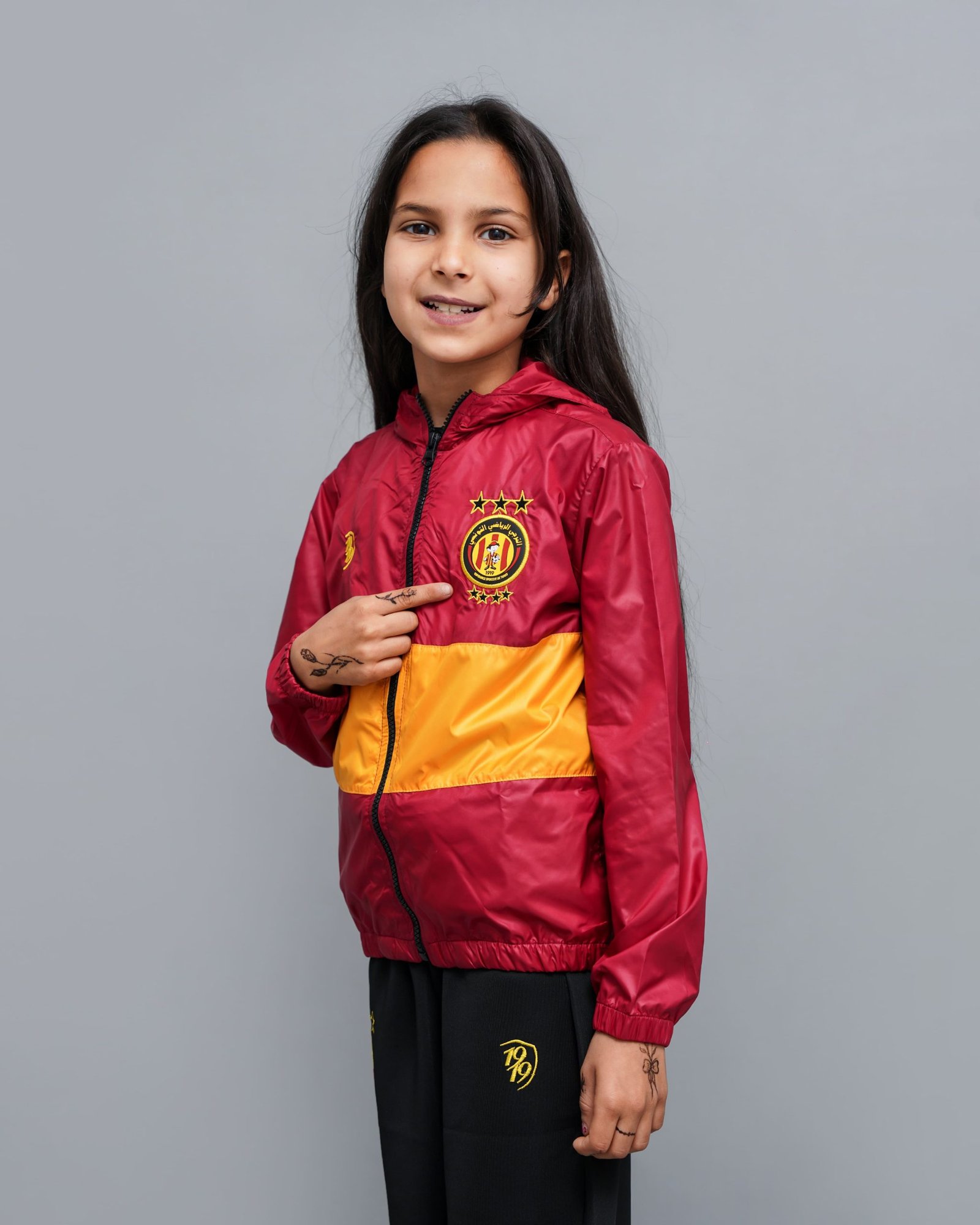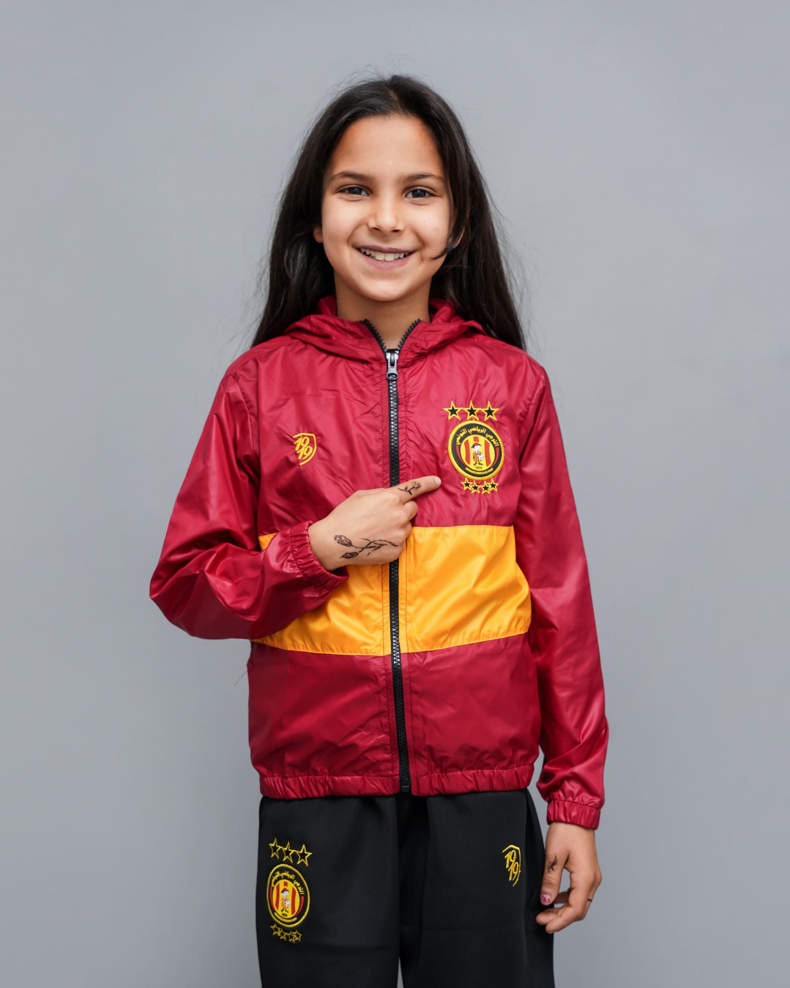 La Veste Espérance Champions League reprend les éléments graphiques distinctifs du club. Le blason brodé sur la poitrine et le contraste rouge/jaune rappellent immédiatement l’héritage sportif de l’Espérance. Ce modèle représente donc plus qu’un simple coupe-vent : il est un symbole de fidélité pour les jeunes générations.