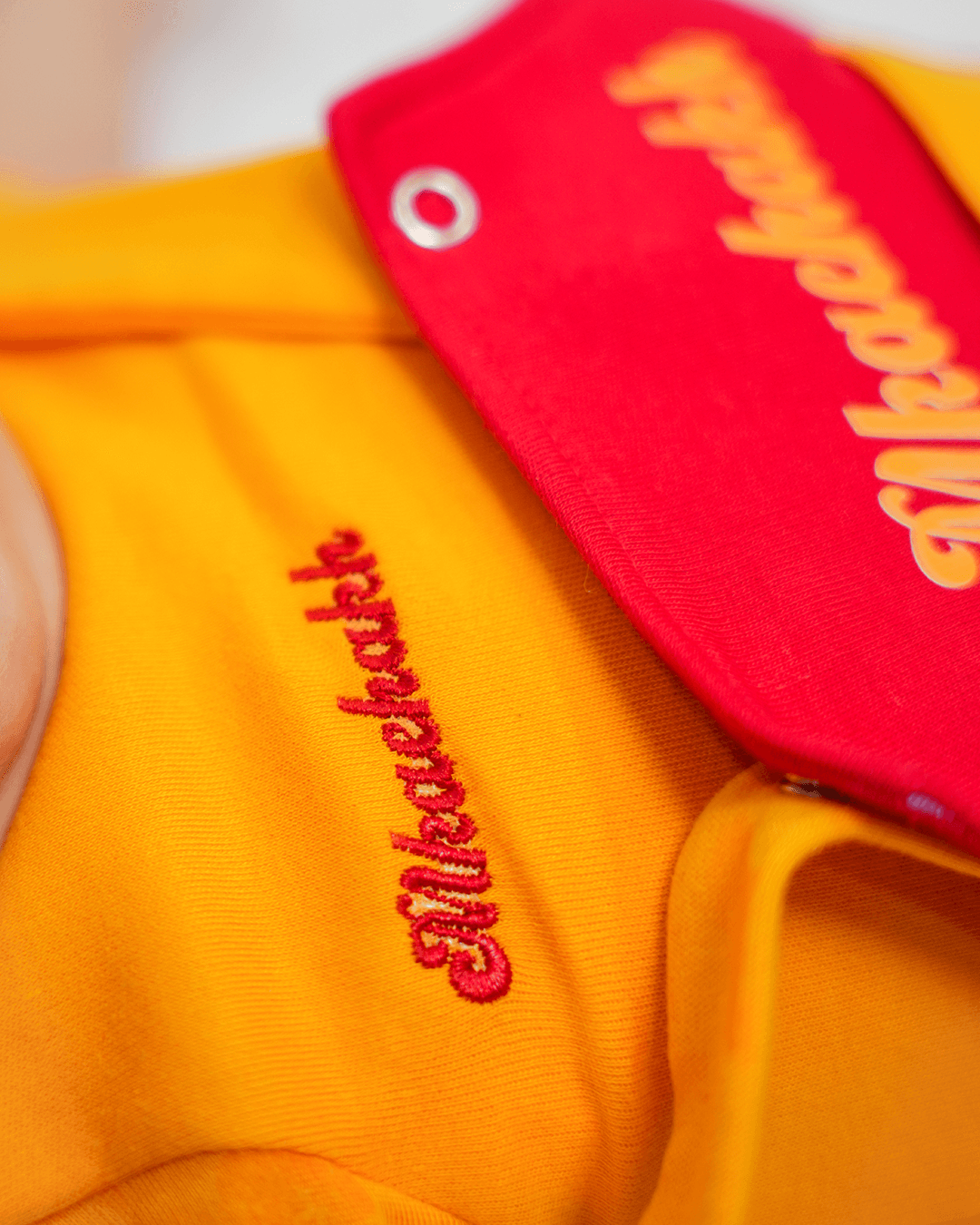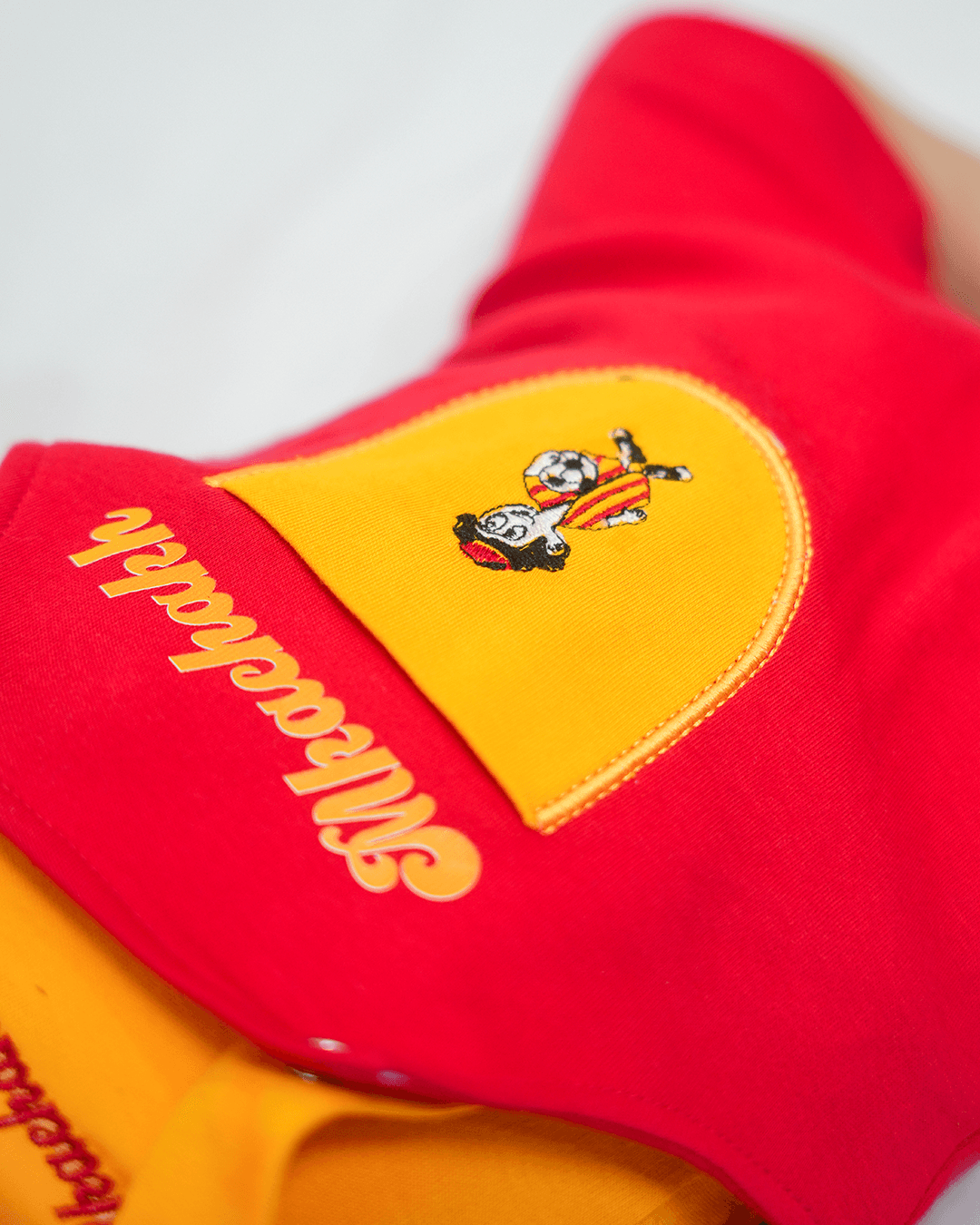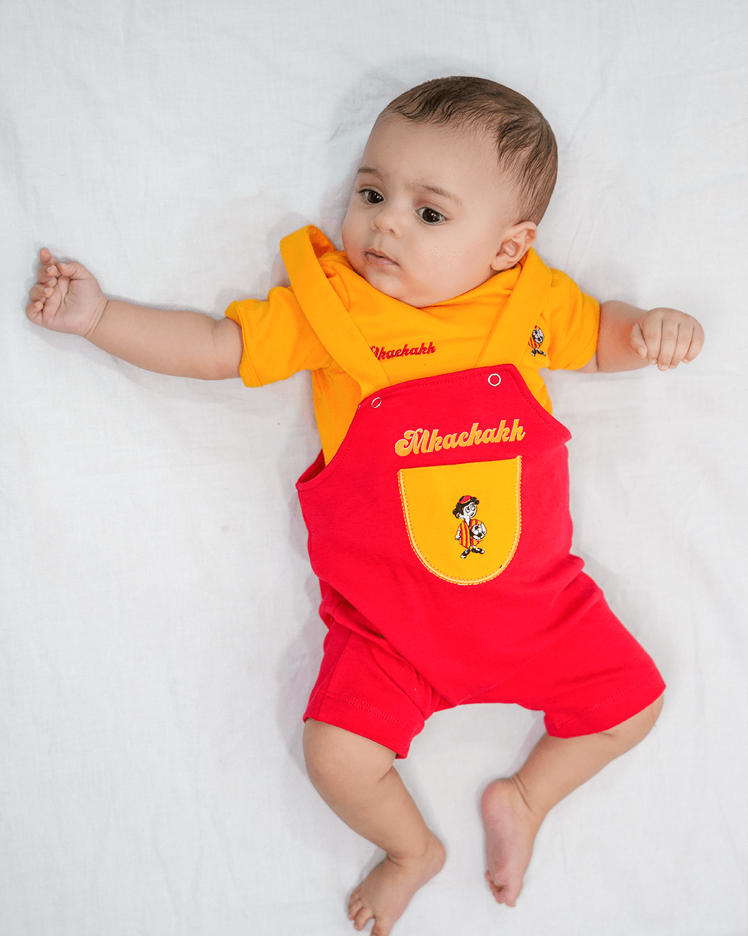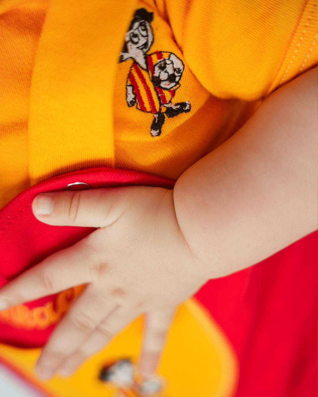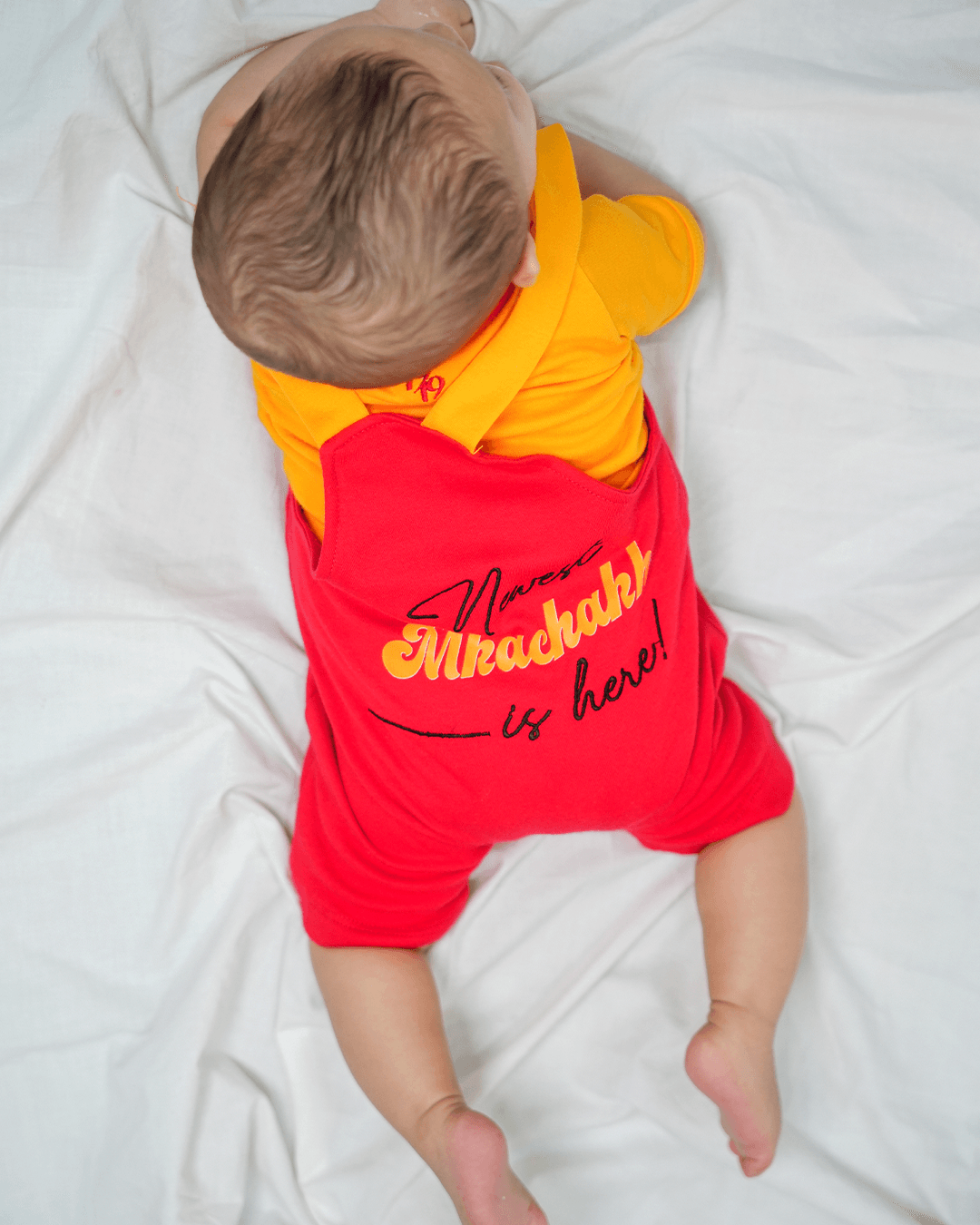 Salopette + Pull Simple 25, Taraji Store propose un hommage tendre et haut en couleur à la passion Taraji, spécialement conçu pour les tout-petits. L’ensemble se compose d’une salopette rouge vif à bretelles jaunes, accompagnée d’un t-shirt simple jaune assorti, pour un look totalement « Espérance ».