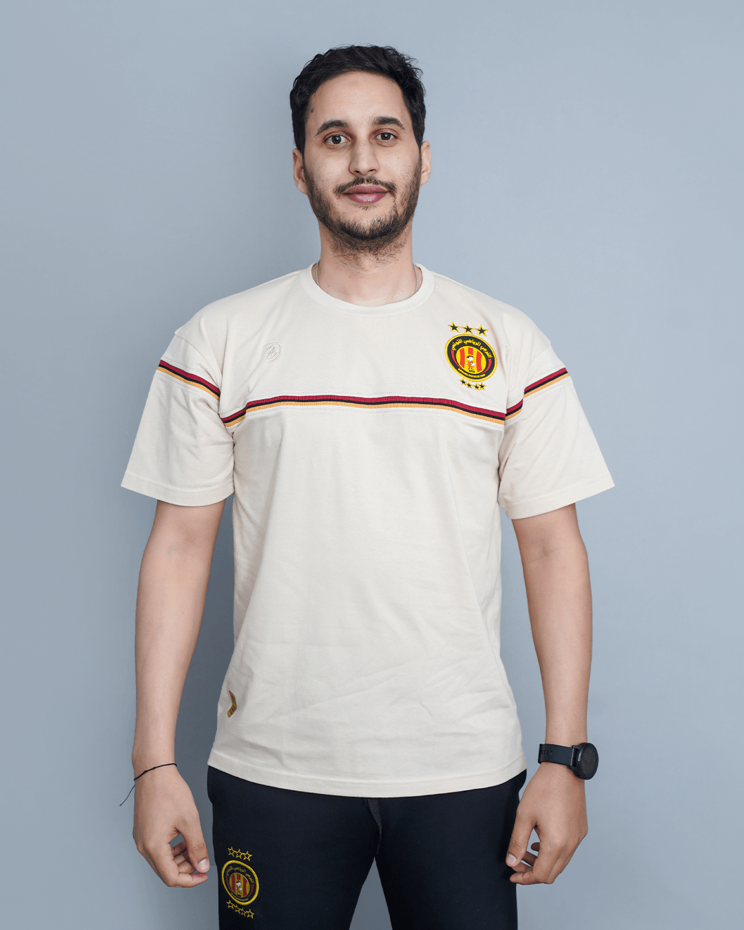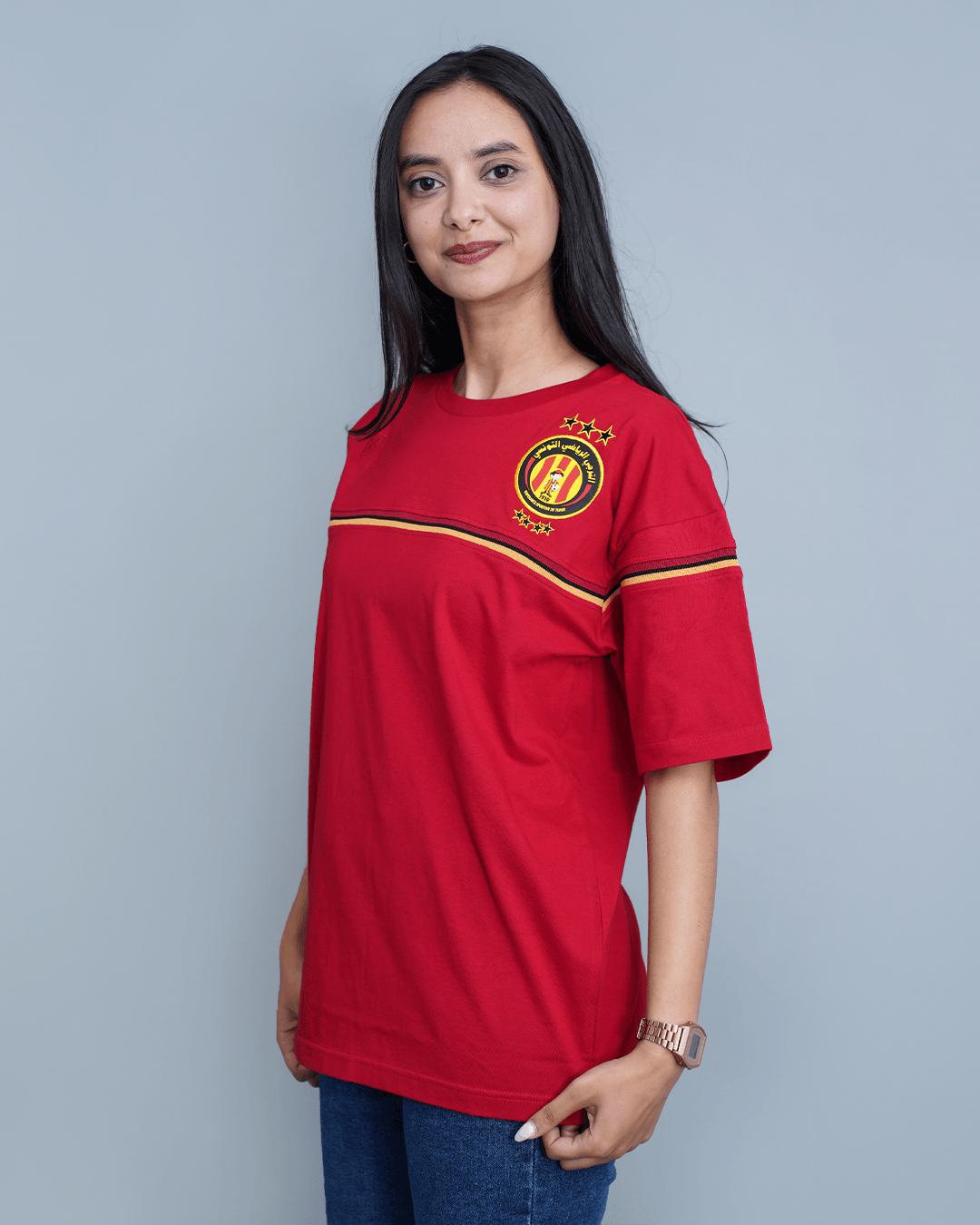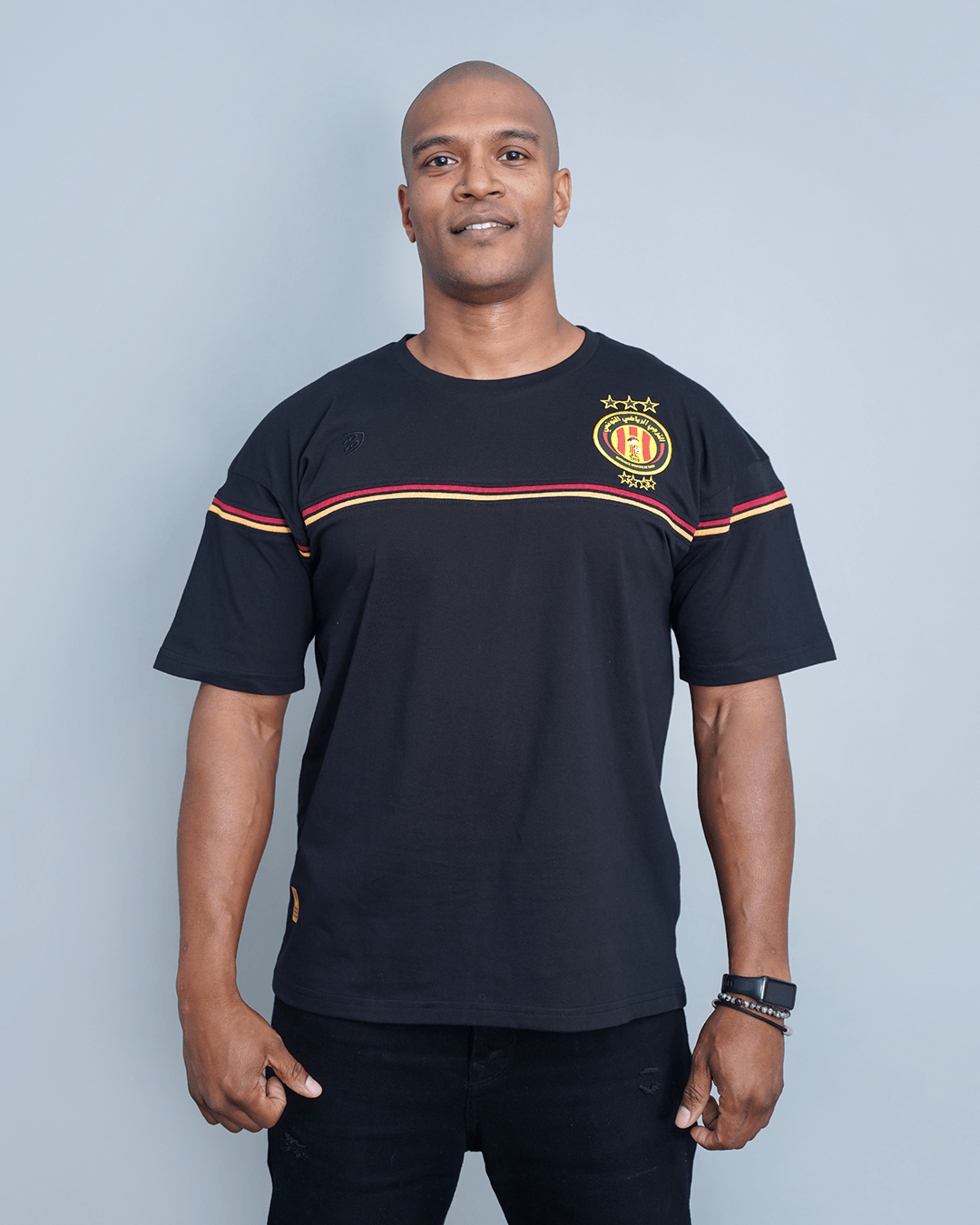 Ce t-shirt arbore fièrement le blason de l’Espérance Sportive de Tunis brodé au niveau de la poitrine. La coupe droite offre une allure moderne tandis que la bande horizontale, subtilement insérée sur le haut du buste, ajoute une touche graphique reconnaissable. De plus, sa matière douce en coton assure un confort optimal, même lors des journées les plus actives.