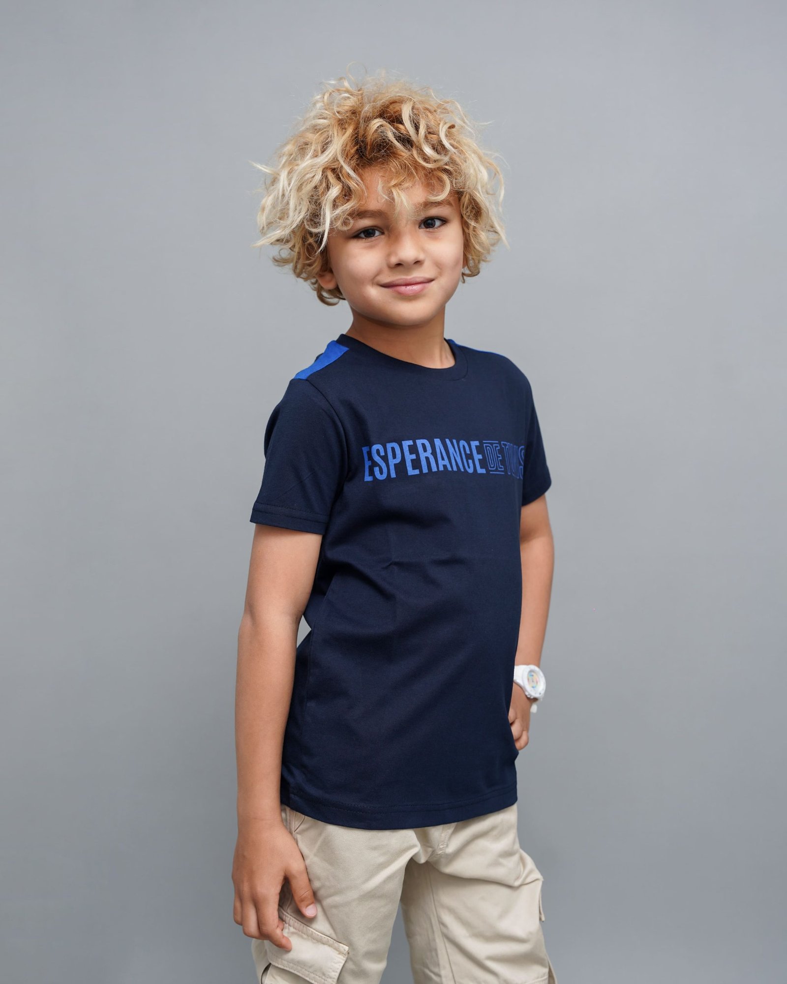 Le T-shirt rentrée Espérance enfant est parfait pour débuter l’année scolaire avec style. Ce modèle noir incarne la sobriété et l’attachement au club. Il fait partie de la nouvelle collection Back to School 2024 du Taraji Store.