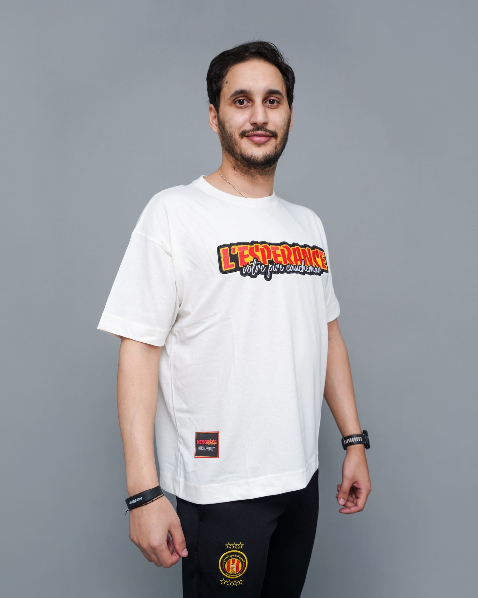 Fabriqué en coton premium, ce t-shirt offre un confort exceptionnel et un tombé oversize tendance. Son imprimé “L’ESPÉRANCE – notre plus grande force” au centre du torse affirme clairement votre passion pour l’Espérance Sportive de Tunis.